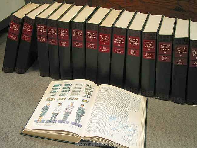 Meyers Neues Lexikon. Zweite, völlig neu erarbeitete Aufl. VEB Bibliographisches Institut Leipzig 1972. 15 Bände A - Z und ein Ergänzungsband (von 3) (Register, als "Band 18") ca. 11000 S Kld. mit zahlr., z.T. farbigen Abb. [I] 110 Euro (2627)